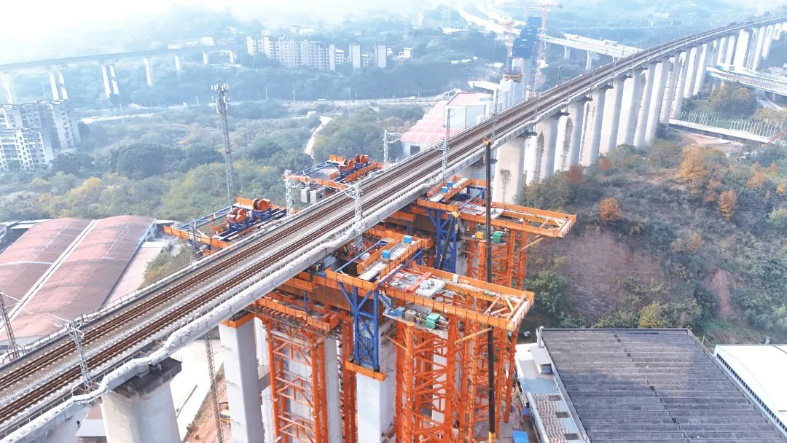 除此之外,在成渝中线重庆枢纽段1标“托梁换柱”施工中,技术人员结合智能感知算法,创新新工艺,节约工期6个月,降低造价超1亿元,为铁路建设领域首例;研发的大型结构物安装测量定位系统,具备多项智能化功能,工效提升60%;开发的桥梁施工起重设备数字孪生监控系统,实现智能感知和精准控制,提升作业精度,减少作业时间。