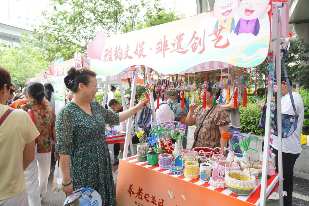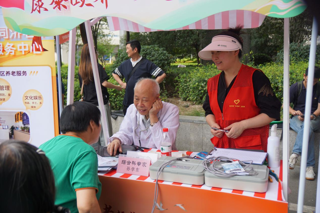 四大养老服务成果展示区域同样热闹非凡,“康泰颐养篇”区域为老人提供免费视力、口腔检查、血糖血压健康检测。“雅韵文娱集”区域的非遗传统技艺展示、手工艺品义卖吸引了众多爱心人士,社区幸福食堂的免费消暑饮品,带来了炎炎夏日的丝丝清凉。“智享银龄坊”区域有最前沿的适老化科技产品,手指康复机器人手套、外骨骼助行器等智能设备的操作展示,吸引许多老人驻足观看。“善暖公益廊”区域开展了旧物置换、防诈骗宣传和禁毒宣传、爱心献血、更换第三代社保卡等公益活动,让老年人受益匪浅。