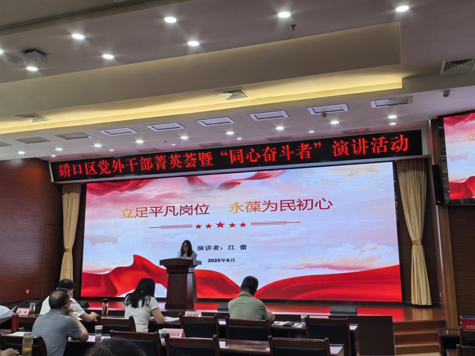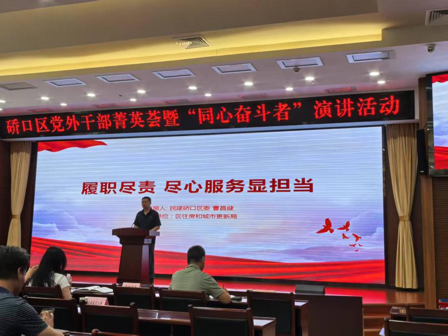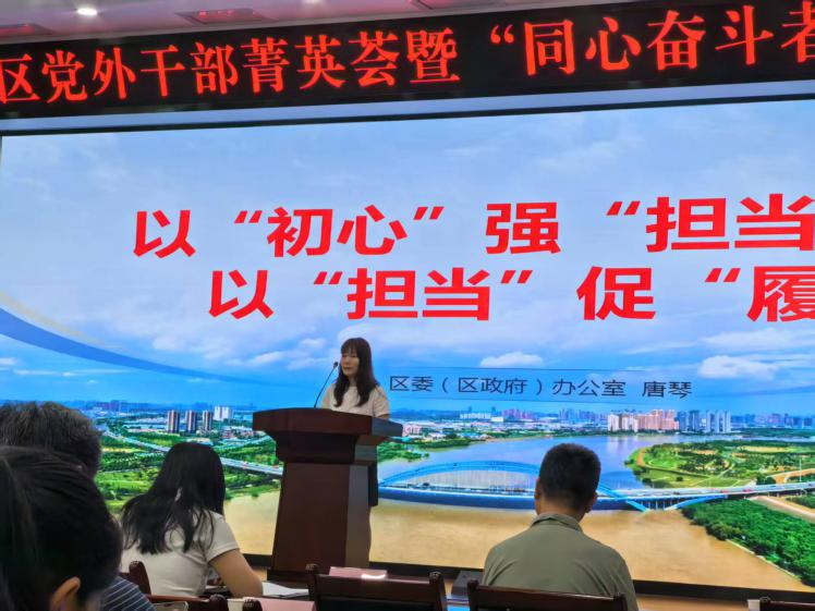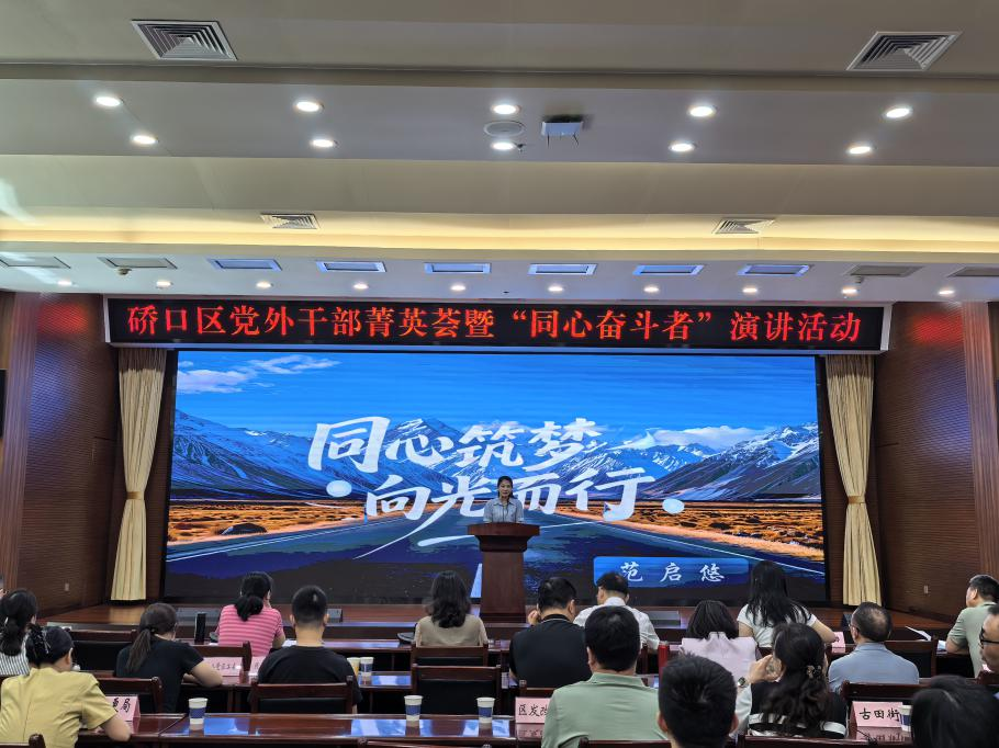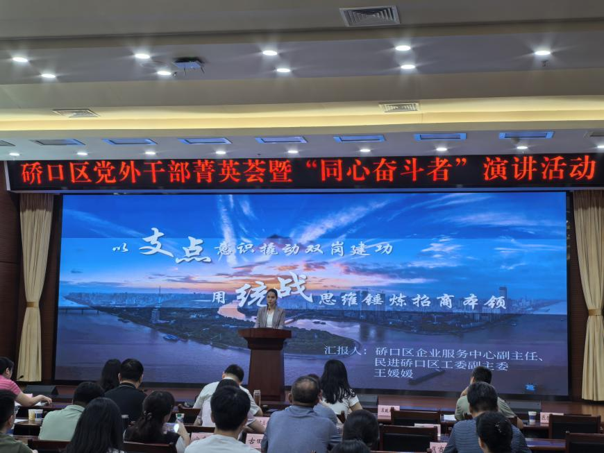 为深入学习习近平总书记关于做好新时代党的统一战线工作的重要思想,贯彻落实习近平总书记考察湖北重要讲话精神,深入贯彻落实“干部素质提升年”的部署要求,弘扬“围绕中心、同心奋斗、实践建功”精神,6月17日,由区委统战部主办的“硚口区党外干部菁英荟暨‘同心奋斗者’演讲活动”在区会议中心二楼二会举行。区委常委、组织部部长赫敏,区委常委、统战部部长姚碧波出席。区各民主党派、知联会主要负责人、区党外干部代表,区直相关单位及部分街道分管领导等共50余人参加活动。