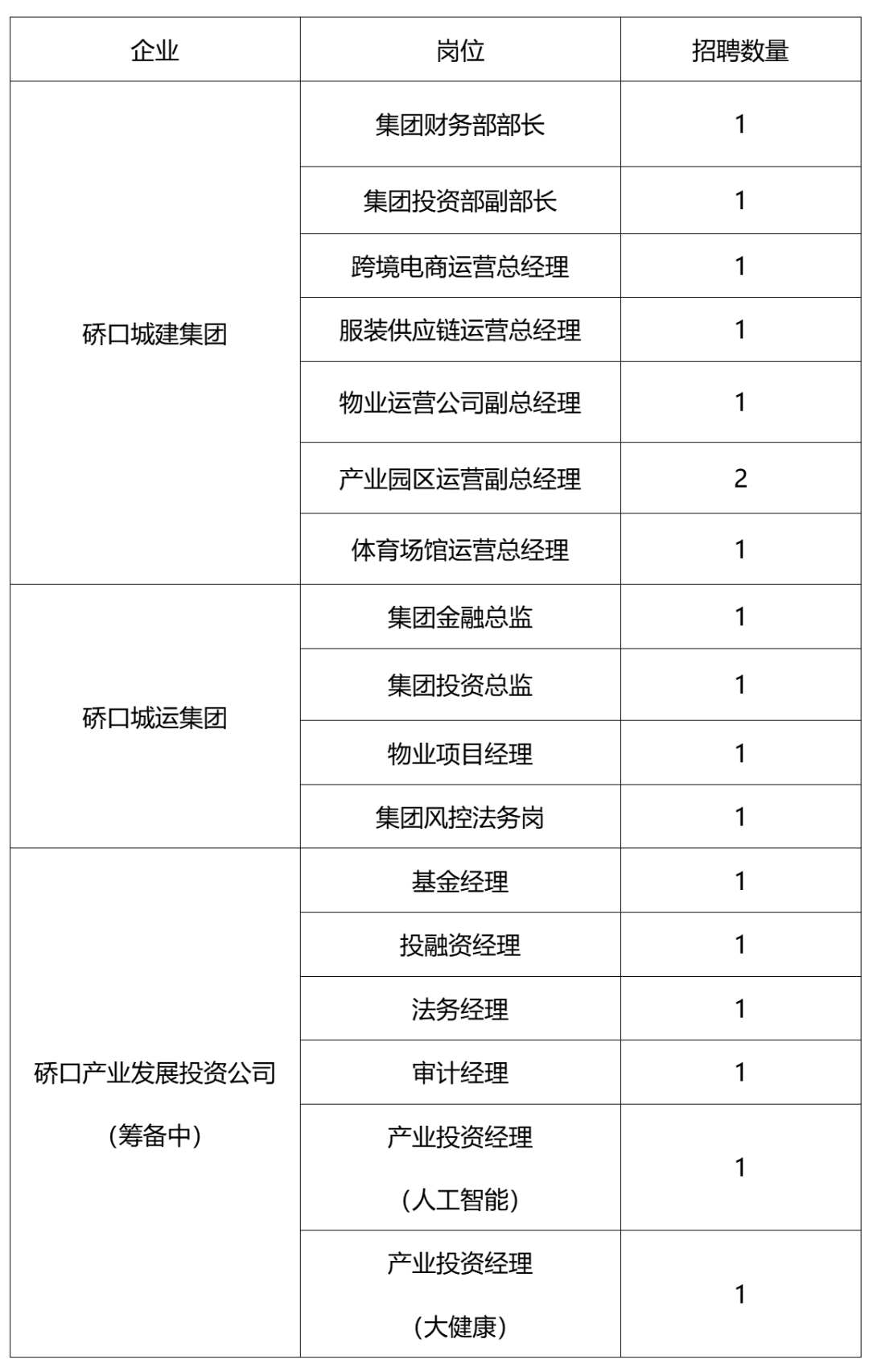 产业投资类等17个岗位