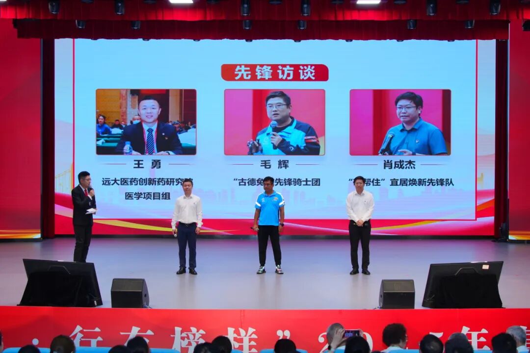 市级先锋队党员代表远大医药创新药研究院医学项目组王勇、“古德兔”先锋骑士团毛辉、“硚帮住”宜居焕新先锋队肖成杰分享了立足岗位攻坚争先故事。