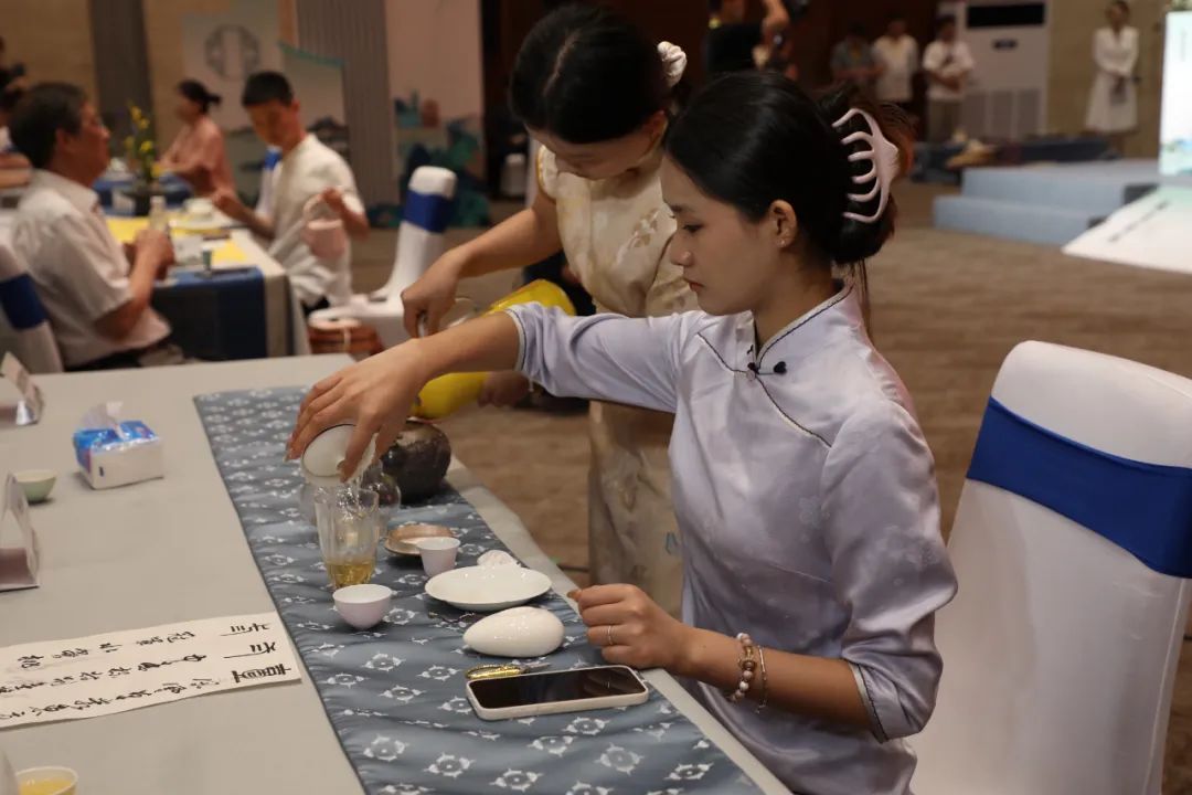 竞赛亮点纷呈。赛事特邀五位国内茶艺领域权威专家组成裁判团,确保赛事的公正性与专业性。选手们通过泡茶、奉茶、品茶等环节,将茶艺的“形、神、意、韵”展现得淋漓尽致,特别是在自创茶艺环节,选手们将传统文化与现代审美巧妙结合,传递了茶文化的精神内涵。