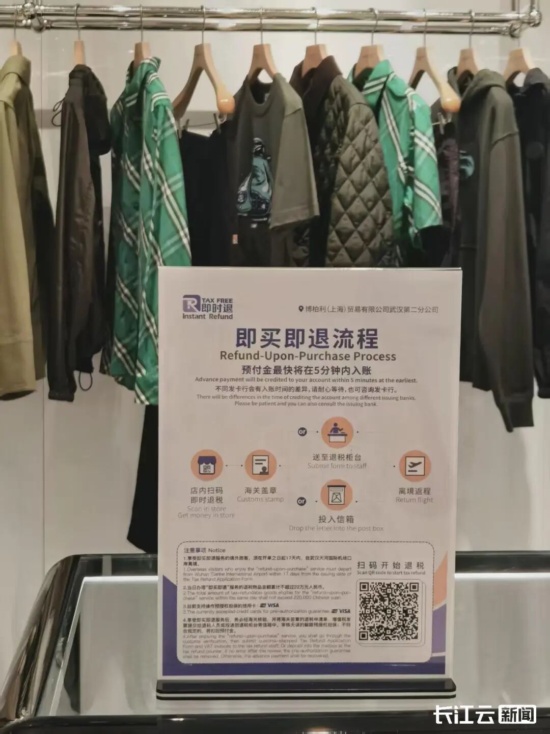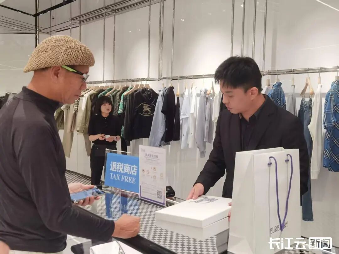 8日中午,香港游客李先生走进位于武汉恒隆广场二楼的BURBERRY门店,选购了一件标价万余元的夹克。这是一家贴有“即买即退”标识的退税商店,在该店工作人员的帮助下,李先生现场签署服务协议并办理信用卡预授权,仅用几分钟,1125元预付金已经到账。下周离境时,李先生办完海关核验等手续,退税代理机构解除预授权后,这笔与退税款等额的预付金就会转为真金白银,精准落袋。