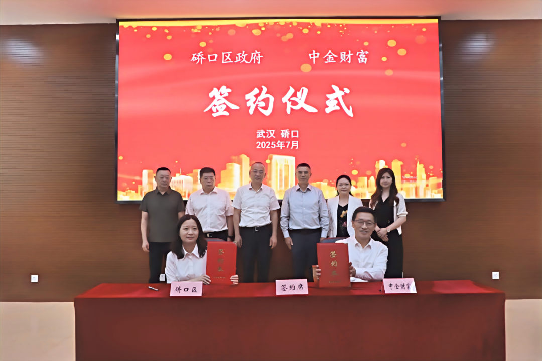 7月9日,中金财富与硚口区举行战略合作协议签约仪式。中金公司党委委员、管委会成员,中金财富党委副书记、执委会主任、总裁王建力,硚口区委书记周耕出席仪式。