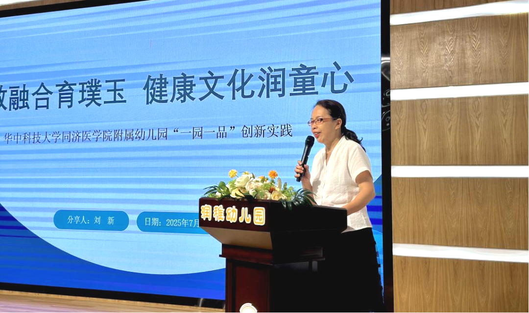 同济医学院附属幼儿园刘新园长带来《医教融合育璞玉 健康文化润童心》的专题分享,讲述了幼儿园依托高校资源,整合医学院健康教育环境、精心营造健康教育互动空间、用心打造“大健康”课程特色,形成了亲切感、童趣感、特色化的育人环境,全方位为幼儿的健康成长赋能。