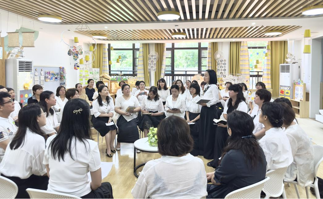 硚口区学前教育以“四大文化 ”为滋养,紧紧围绕“健康文化铸就生命底色,冠军文化历炼意志品格,行知文化滋养生活智慧,院士文化点燃创新火种”来深推一园一品建设。2025年7月9日上午,150余名幼儿园园长和管理干部相聚润稚幼儿园,开启了以“我们的一园一品”为主题的文化论坛。