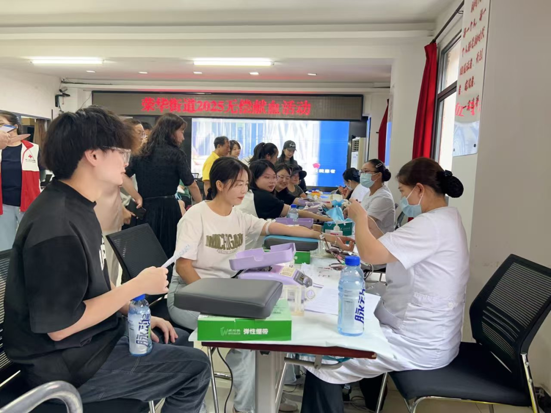 7月11日上午,荣华街道联合武汉市献血中心开展无偿献血活动。街道机关党员干部、武汉建工集团、中国人民财产保险股份有限公司武汉市分公司(以下简称人财保险武汉市分公司)等辖区单位职工及居民积极响应,以实际行动践行社会责任,用汩汩热血为生命架起希望的桥梁。