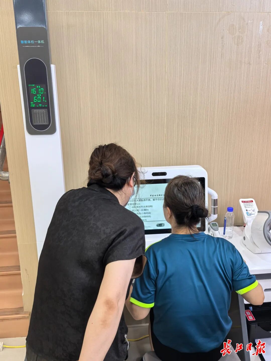 智能健康检测一体机也吸引了老人们来体验,居民李爷爷拿着包括血糖、血压等数据的体检报告仔细阅读,“很实用,方便我们随时监测指标”。