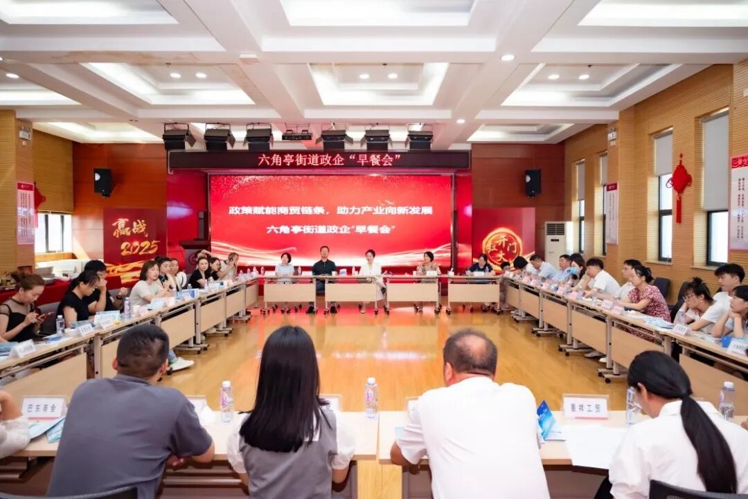 早餐会活动由六角亭街道相关负责人主持,聚焦当前全球经贸格局变革与产业链重构背景,围绕我区最新发布的惠企政策展开深度解读与交流。