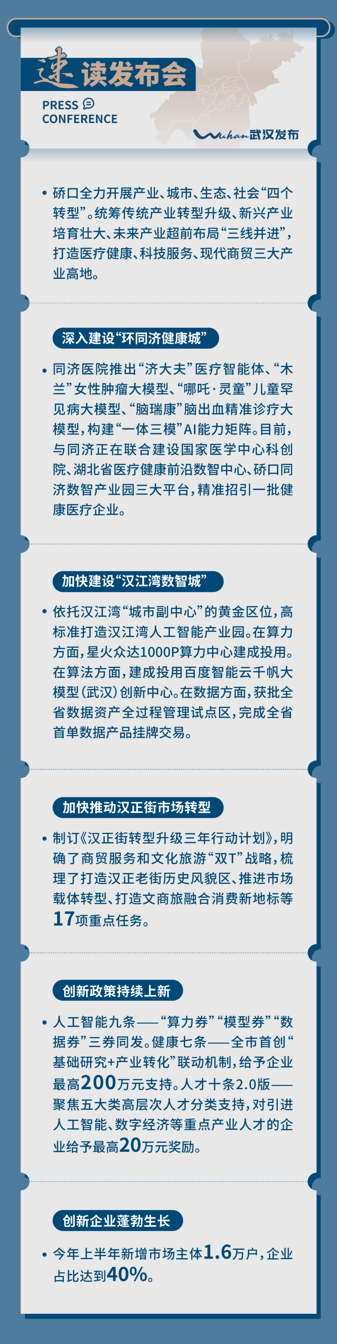 “十五五”期间,我们将全力推动数字经济与实体经济深度融合,优先布局AI+、DI+、IP+等多个细分领域,让“老汉口长出新感觉”。