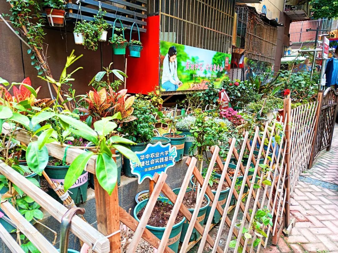 ▲六角亭街道荣东社区与华农大学联手打造的“共享花园”点缀巷景