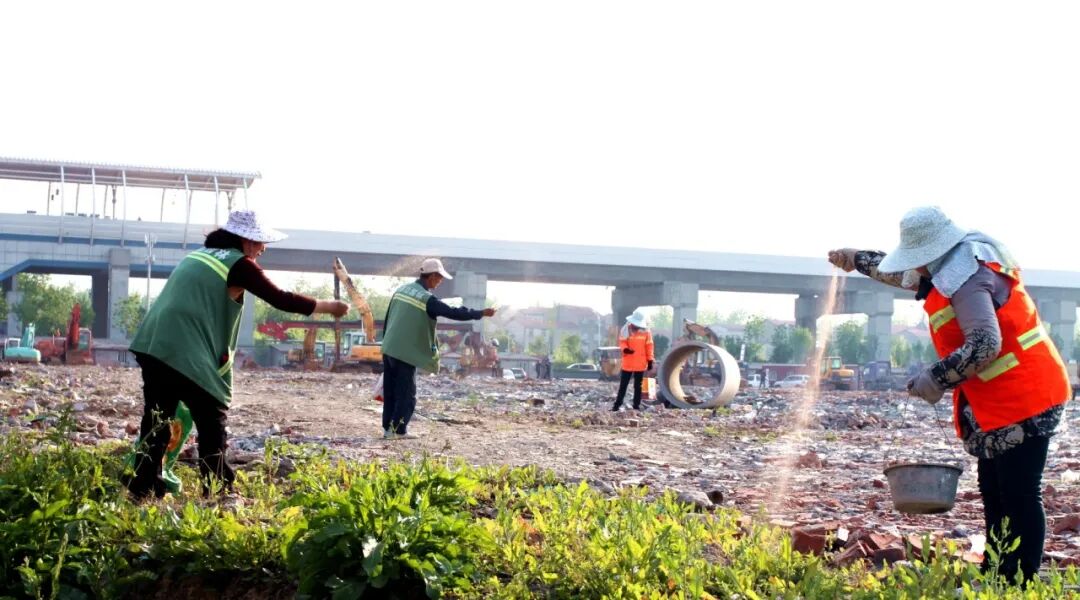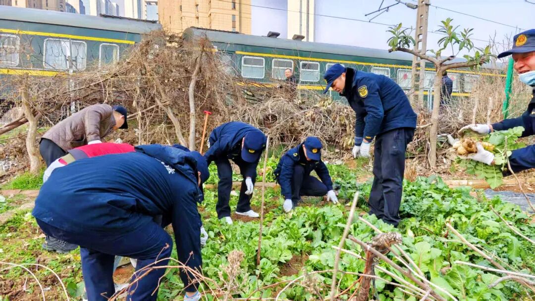 ▲清除铁路沿线非法种菜,对拆迁空地播撒草籽