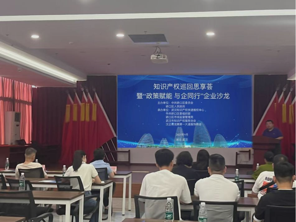 为深入贯彻落实湖北人才周暨武汉人才周系列活动要求,加快推进新时代人才活力强区建设,聚焦企业和人才需求,强化知识产权意识,9月16日,由武汉知识产权快速维权中心、区委组织部、区市场监管局、汉正街道联合举办的知识产权巡回思享荟暨“政策赋能 与企同行”企业沙龙活动顺利举行。本次活动汇聚了近百名汉正街商户代表,通过政策解读、案例分享和授牌仪式等多个环节,为企业创新发展和知识产权保护提供专业支持。