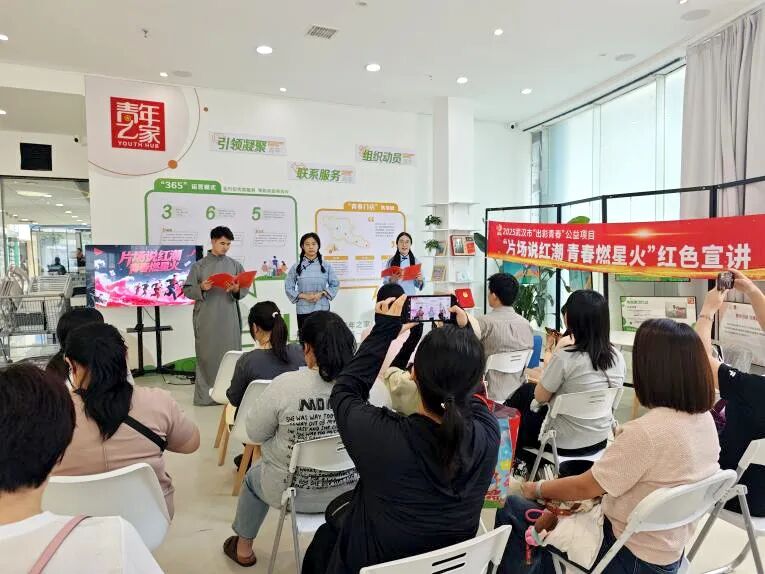 从社区到商圈,从青少年空间到户外工作者驿站,“片场说红潮 青春燃星火”红色宣讲项目已在硚口开展了7场专场活动,有效推动红色宣讲“分众化、常态化”传播,让红色精神的星火在更多领域“燎原”。