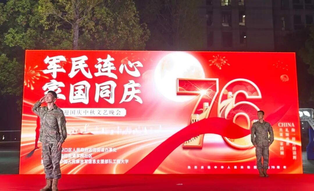 9月28日晚,中国人民解放军信息支援部队工程大学校园内歌声飞扬、舞姿跃动,值此国庆中秋双节来临之际,由硚口区古田街道主办、信息支援部队工程大学协办、军院社区承办的“军民连心 家国同庆”文艺晚会在此隆重举行。