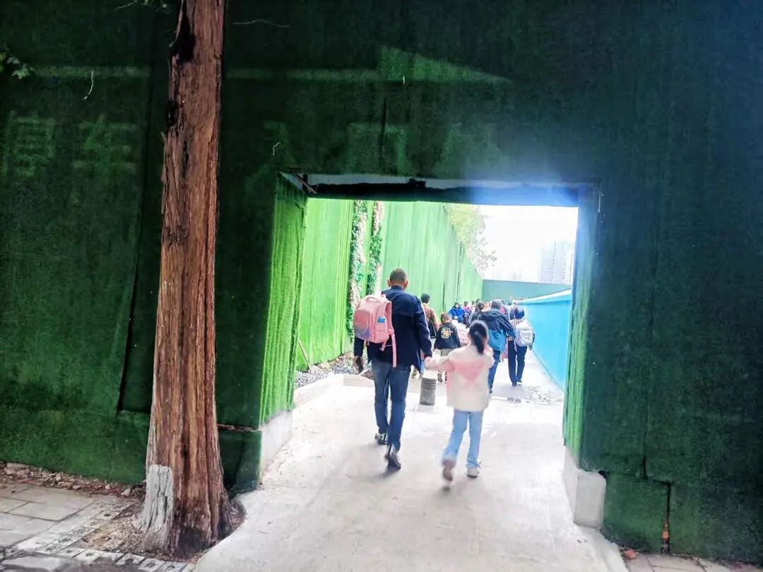 “之前送孩子上学要绕一大圈,还要在瑞庆街和宗江路交会的红绿灯那里找车位,停车后把孩子送到学校门口才放心。现在好了,直接停在解放大道,孩子从这条‘安心步道’走150米就进学校,省心又安全。”家长李先生为这条便民通道直竖大拇指。