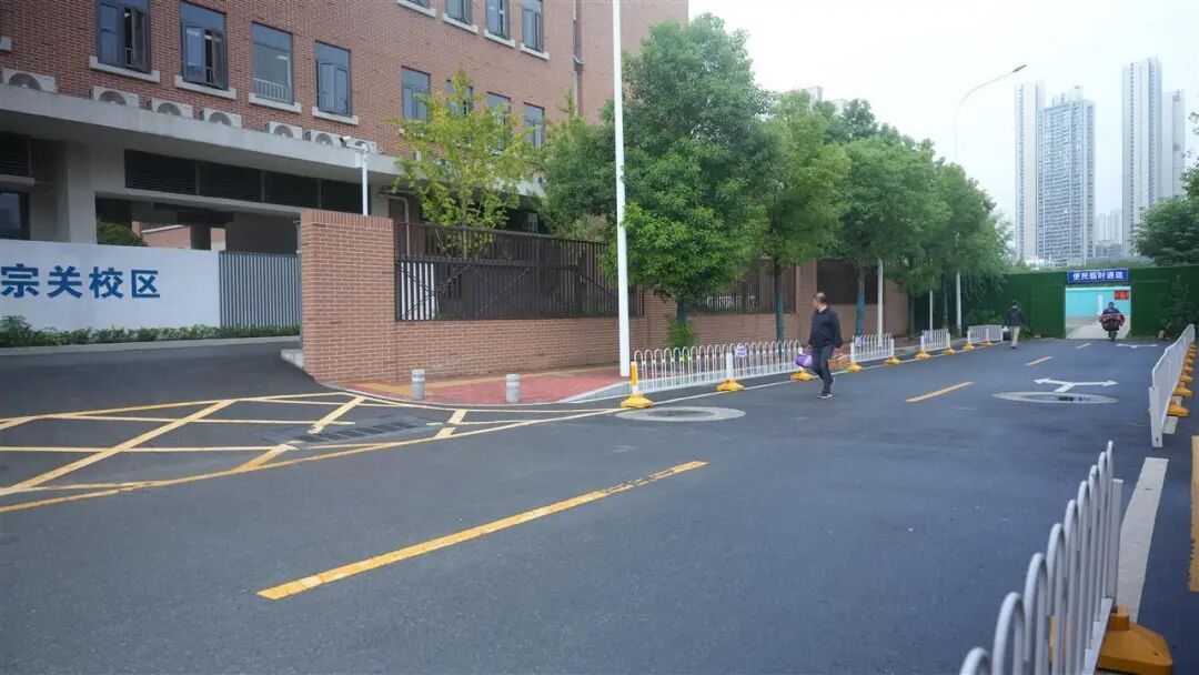 与此同时,运送340名一年级学生的11辆定制公交车,停靠在仅两股道的宗江路,不仅让周边居民出行受阻,孩子们下车后还要在车流缝隙中小心穿行。如果有一条步行小路,公交车就可以停在宽阔的解放大道旁,孩子们下车后,可以安全步行入校。