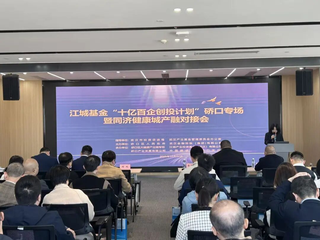 10月24日上午,江城基金“十亿百企创投计划”硚口专场暨同济健康城产融对接会在K11写字楼35层同济科创中心成功举办。市投资促进局党组成员、副局长隋鹏,武汉金控集团党委委员、副总经理、江城基金董事长程驰光,市生命健康产业专班、市委组织部考评二处二级调研员宋杰,市卫健委产业处处长孛昌,硚口区领导苏新威、鲁翠玲等出席活动,30家投融资机构、14家重点健康企业及9家医疗机构代表共同参加。