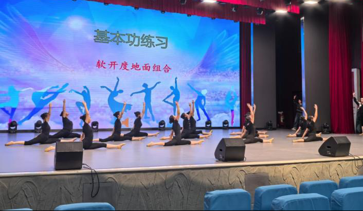随后的汇报表演将此次活动推向高潮。报告厅内,艺职部舞蹈队的同学们以饱满的热情,呈现了三个部分的精彩演出:从展现扎实功底的基本功训练,到富有感染力的个人独舞片段,再到气势恢宏的成品舞《纸扇书生》、《橘颂》与《旗帜》。孩子们虽身处无声世界,却用精准的节拍、饱满的情感和极具张力的肢体语言,完美演绎了舞蹈的魂与美。