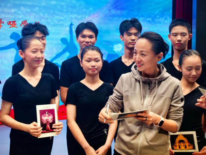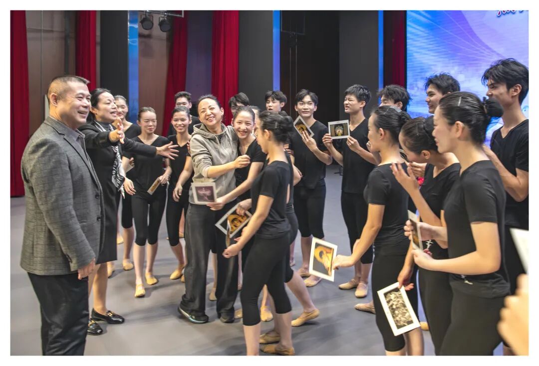 观演结束后,邰丽华女士怀着激动的心情走上舞台,与学生们近距离互动。她动情地说:“从你们的表演中,我看到了对舞蹈最纯粹的热爱和背后付出的无数汗水与努力,从你们的表演中我看到了执着和对梦想的坚守,让我深受感动。”她回忆起自己当年在母校的求学时光,那些为了梦想而拼搏的日子,仿佛就在眼前。她分享了自己如何从这里起步,一步步走向《千手观音》、走向世界舞台的心路历程。每一个故事,都饱含着艰辛与汗水,也充满了希望与梦想。她的话语,如同一股暖流,流淌在每一个学生的心间,给予他们无尽的力量与勇气。她就像一位亲切的学姐,用温暖的话语和真诚的笑容,感染着在场的每一个人,现场气氛感人至深。