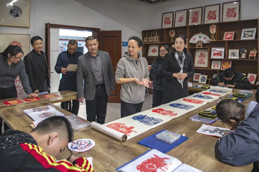 在艺职部职业技能班,邰丽华被孩子们专注创作的神情深深吸引。她驻足于汉绣、剪纸、书法、形象设计等课堂前,仔细观看学生们飞针走线、巧手裁剪。