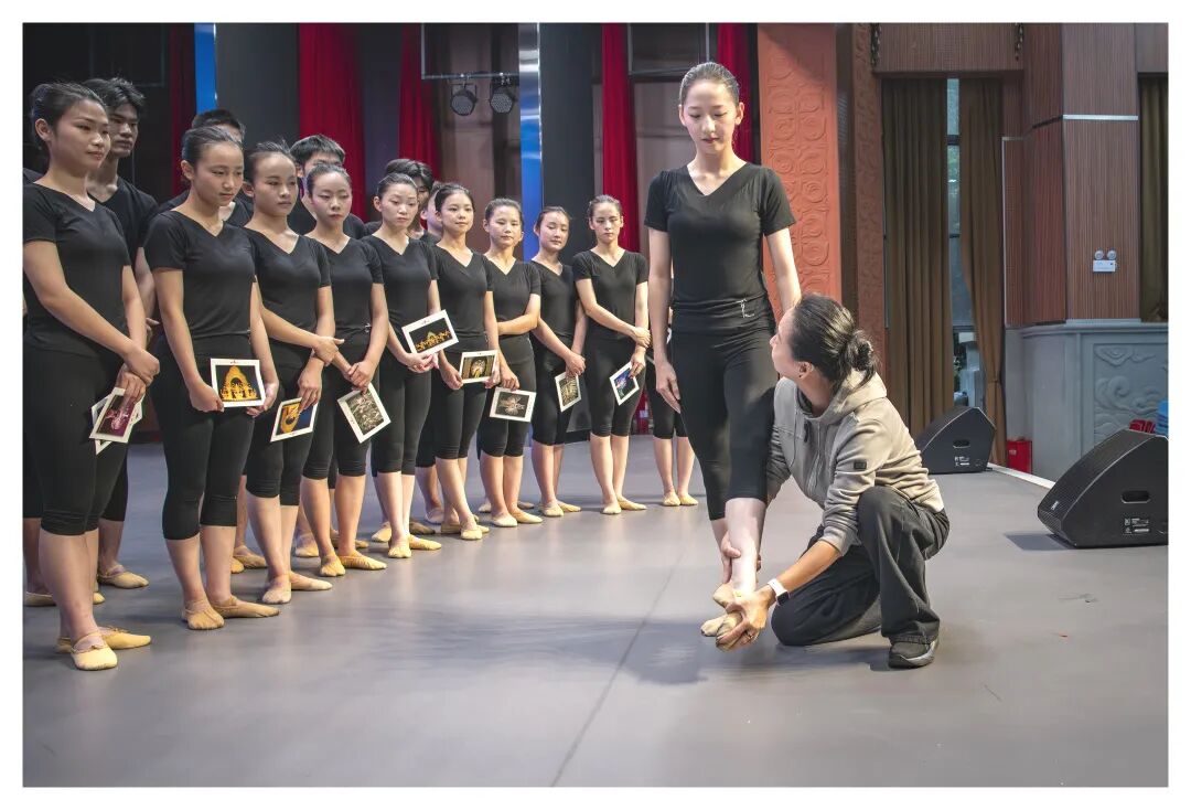 △邰丽华精心指导学生舞蹈基本动作 朱波夫 摄