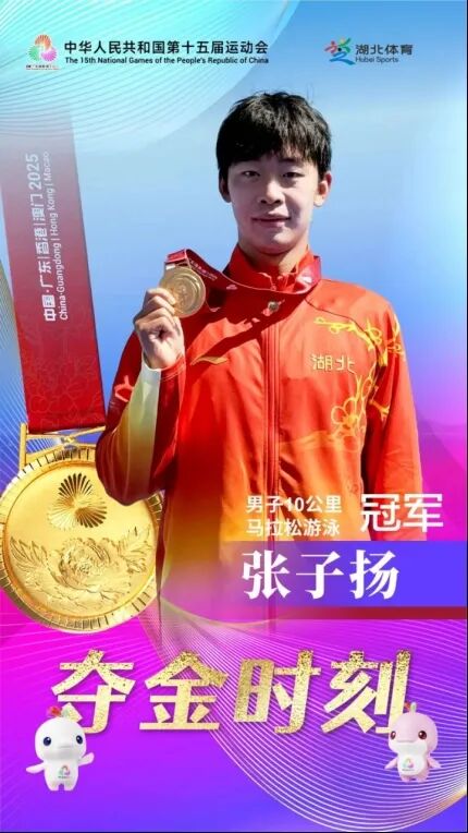 11月6日,在第十五届全运会男子10公里马拉松游泳比赛的公开海域上,从硚口区体育馆小学走出的游泳名将张子扬,以1小时59分55秒的优异成绩成功卫冕,为湖北代表团夺得本届全运会竞技项目的第三金。这不仅是他个人运动生涯的又一高光时刻,更是硚口区“体教融合”育人模式结出的又一硕果。