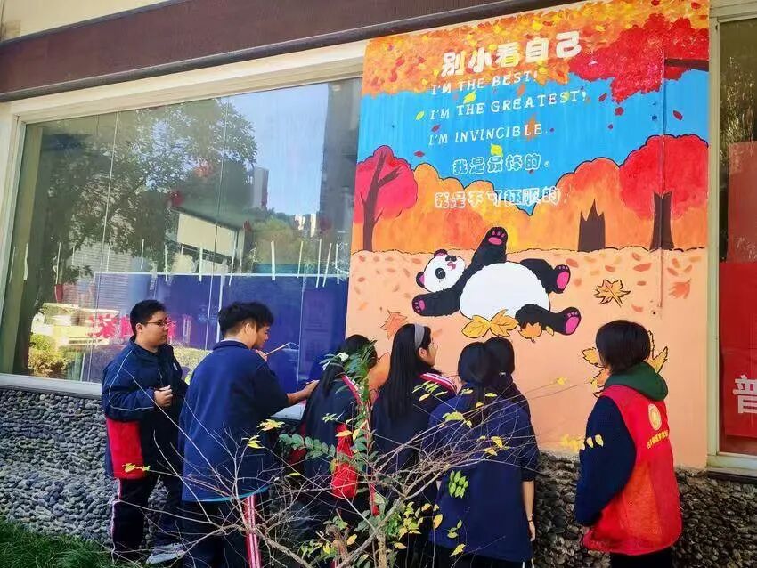 当憨态可掬的熊猫“手握”画笔,与“我是最棒的!”的立体标语一同跃上墙面,古田街道罗家墩社区的主入口,瞬间变成了一处充满朝气与国际范儿的“青春画廊”。