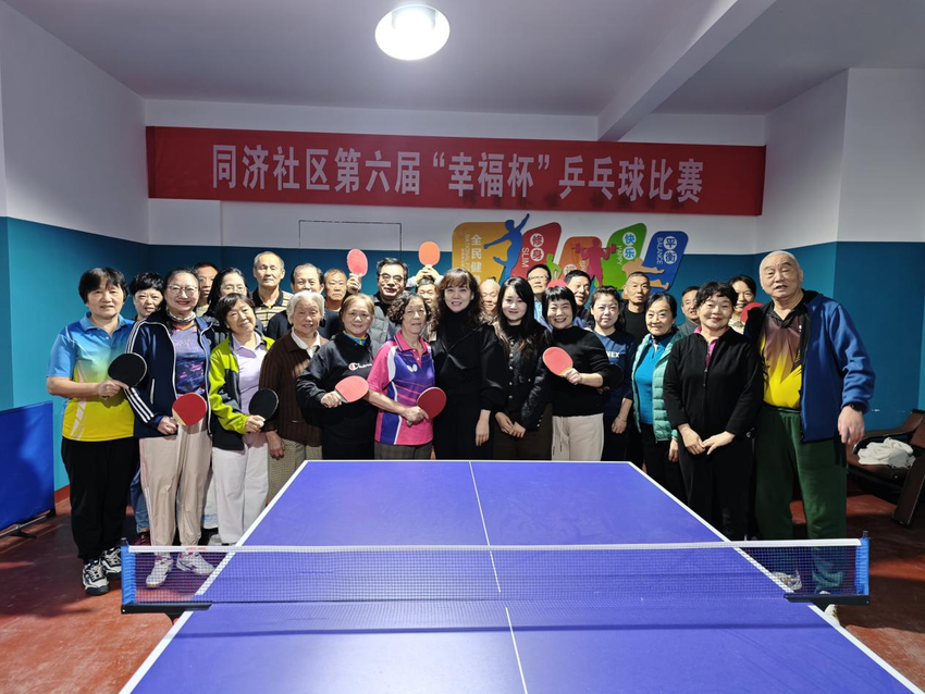 11月12日一早,同济宝丰小区2号楼的乒乓球室里已是一片热火朝天。同济社区第六届“幸福杯”乒乓球比赛正激烈进行,各族居民齐聚一堂,以球会友,邻里同乐。