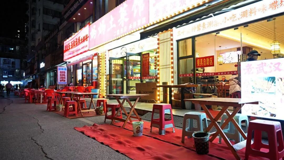 夜市外摆点位是城市烟火气的鲜活载体,更是平衡市容秩序、交通安全与民生需求的关键纽带。汉水桥街道综合执法中心负责人介绍,3604小区外围临街的8个商铺,此前由于周边环境缺乏烟火气,有6家商铺一年多难觅承租人,商铺门前的空地成了附近上班族的停车场。