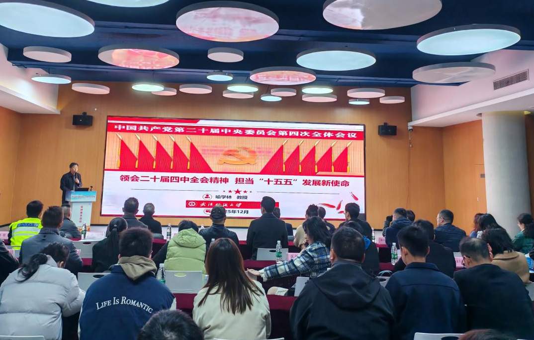 区委宣讲团成员、武汉纺织大学马克思主义学院喻学林教授受邀作专题辅导。喻教授紧扣党的二十届四中全会精神的核心要义,结合国家发展大局与基层实践,对全会部署进行了系统解读,为现场观众带来了一堂兼具理论深度与现实关怀的“思政第一讲”。