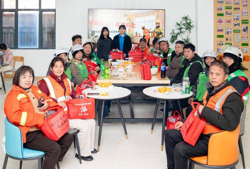1月13日,硚口区六角亭街道学堂社区内暖意融融。一场专门为户外工作者打造的 “暖新驿站·幸福归家——户外工作者社区服务体验日” 活动温情启幕。活动聚焦环卫工人、快递员、外卖配送员、安保人员等新就业形态劳动者,邀请他们走进社区,沉浸式感受“家”门口的温暖。