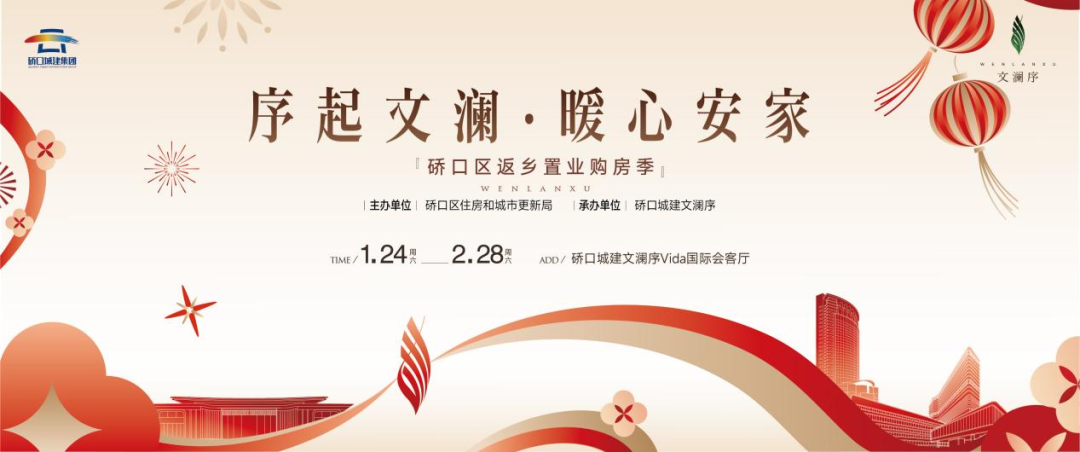 本次“返乡置业购房季”活动将从1月24日持续至2月28日,横跨整个新春佳节。为打响活动头炮,首场线下主题活动将于1月24日、25日(本周六、周日)在硚口城建·文澜序营销中心举行。