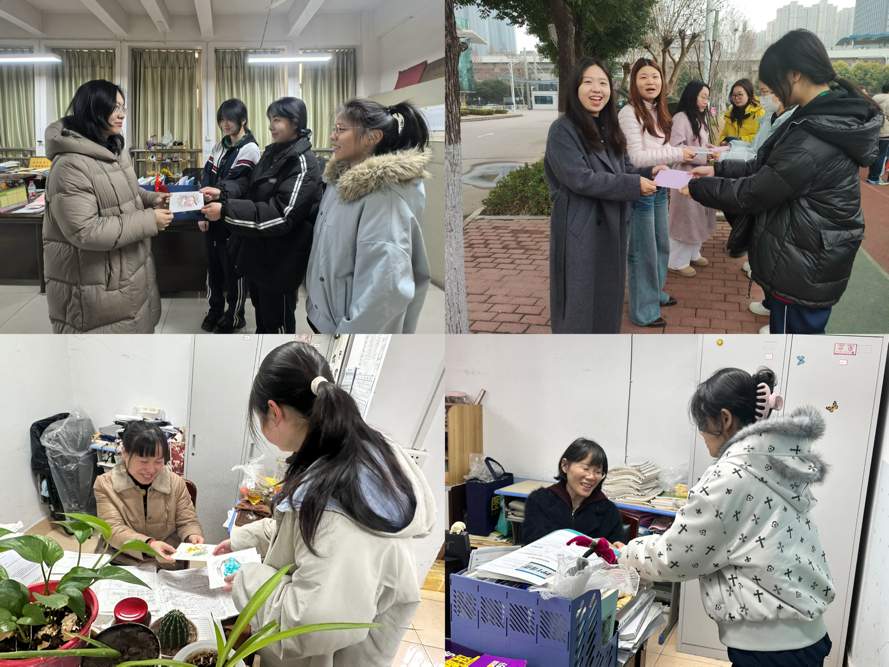学雷锋纪念日与三八妇女节交汇之际,武汉市第十七中学春蕾志愿服务队的同学们亲手为全校女教师书写贺卡,手绘图案、书写祝福。大家在尊师重教的暖心行动中发扬“感恩文化”,在传递祝福中提振“亲善之气”,让校园洋溢着崇德向善、心怀感恩的浓厚氛围。