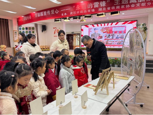 3月5日,武汉收藏品市场联合武汉市硚口区幸福幼儿园开展了“小小雷锋在行动·幸福园里传爱心”雷锋日主题教育活动。在武汉收藏品市场及湖北省收藏家协会文献分会的大力支持下,一件件珍贵的雷锋纪念章、泛黄的雷锋日记和生动的宣传画报走进了孩子们的视野。本次活动充分挖掘周边教育资源,活动通过沉浸式展览、同伴引领及家园实践,将红色种子播撒在幼儿心中。