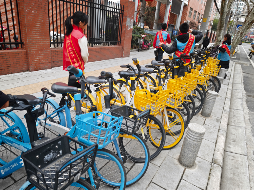 3月4日,武汉市第四初级中学青年志愿者服务队自发整理校园周边共享单车,扶正归位、规范停放;同时开展地铁志愿服务,引导乘客购票、维持秩序。青年志愿者们在团队协作中强化“四个一”团队意识,在服务社会中提振“昂扬之气”,用行动诠释“城市是我家,美化靠大家”的理念,在实践中提升综合素养。
