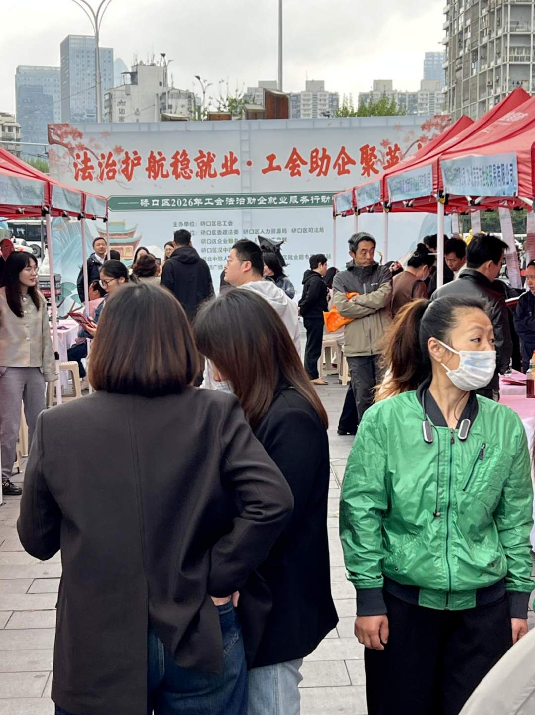 本次活动紧扣“助企”核心,将法治服务前置到招聘全链条——区总工会联合区委政法委、区司法局、区人资局组建“法治助企小分队”,提前为参会企业开展用工体检:逐条指导企业完善招聘公告条款,规避性别歧视、用工模糊等法律风险;现场开设“惠企法律门诊”,解答劳动合同签订、社保缴纳、工伤认定等高频疑问,帮助企业规范管理、轻装上阵。某科技公司HR感慨:“工会不仅搭台引才,更手把手教我们守好法律底线,这样的服务很务实!”