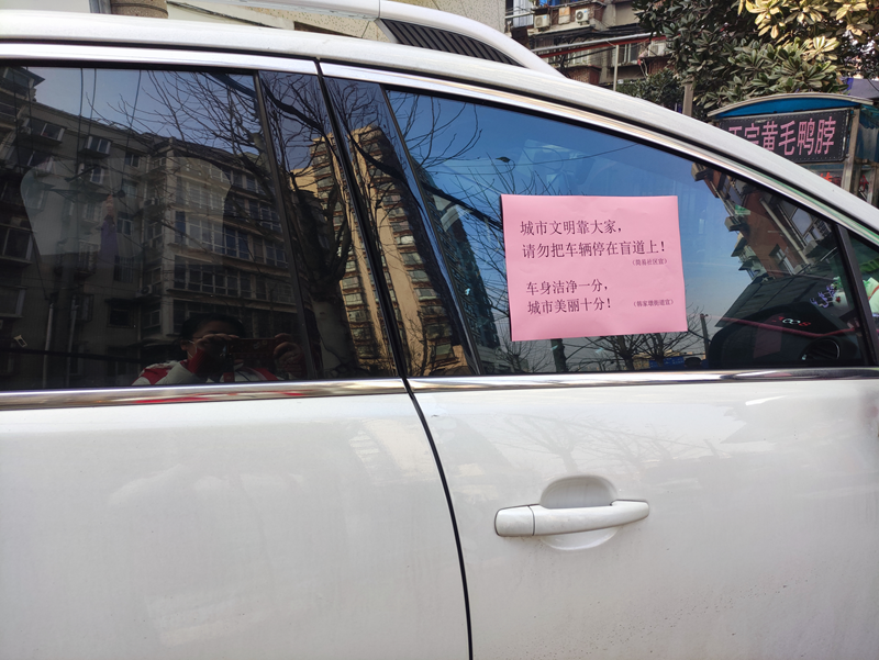 在简易社区“文明用车,美丽江城”宣传活动中,社区志愿者以路面机动车车容车貌宣传工作为重点,提醒车主加强车辆及车牌外观清洁,并对占用盲道的机动车贴上温馨提示。车主们纷纷表示,一定会注意净车出行、文明停车,为维护城区环境贡献自己的力量。