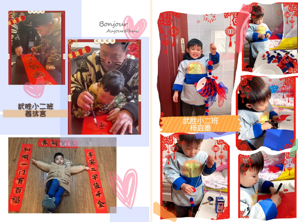 硚口区机关幼儿园的萌娃们,在父母的带领下,积极参与“除尘迎新”“写对联贴窗花”等仪式感满满的“寻找年味”活动中。年味传承在新一代的画笔里、绘本里、剪纸里。