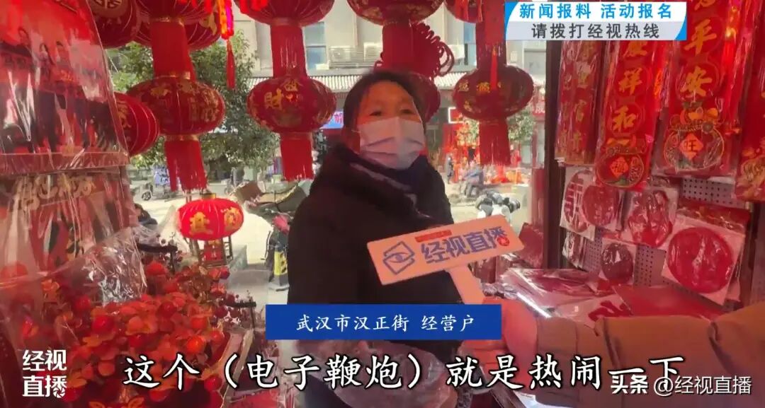 市场里,不时传来噼噼啪啪的电子鞭炮声。商铺经营者表示,不少市民觉得少了鞭炮声,年味总差了点意思,因此,环保的电子鞭炮成了市民采购的新型年货。武汉市汉正街经营商户肖女士说:“通过放电子鞭炮的形式,一方面增加了年味,同时也让节日过得喜庆。”