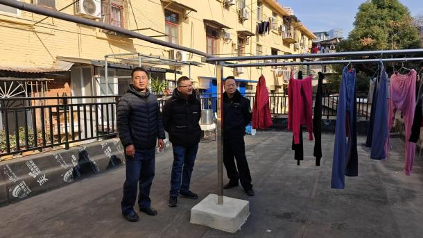 社区征求居民意见后得到全票赞成。同被晾晒难困扰的经营金属结构加工的小区居民汪师傅,主动设计并义修晾晒架。与露台连通的二楼的几户退休师傅,主动“嗒白”义务承担起看护街坊们晾晒物的职责,她们说,平日里只要是出太阳的白天,大部分时间都习惯在露台上晒太阳,正好可以帮大家照看,如果突遇下雨,我们会及时在小区微信群里通知晾晒的街坊们速回来收东西,对个别因故不能及时回来的街坊,我们还可以帮忙收。