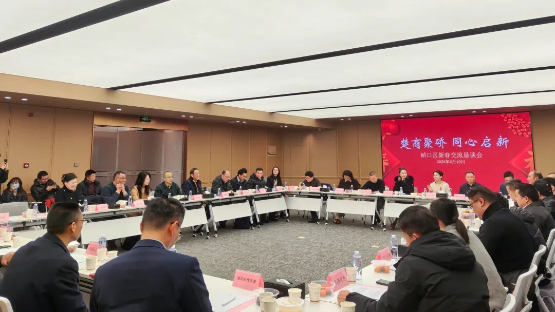 乡音无改,情谊更浓。2月10日正值北方农历小年,硚口区宏狮控股大厦内暖意融融,一场别开生面的“楚商聚硚·同心启新”新春交流恳谈会在此举行。豆皮、面窝等传统武汉早餐,不仅让企业家们体验到武汉“早餐之都”的烟火气息,更以美食为媒,唤起深植于心的乡情纽带。区委书记周耕、区长赵宏亮等区领导,与从北京、广州、深圳等地返汉或来汉发展的二十余位楚商、浙商及本地企业家代表围桌而坐,在轻松亲切的氛围中,共叙乡情、共话机遇、共谋发展。