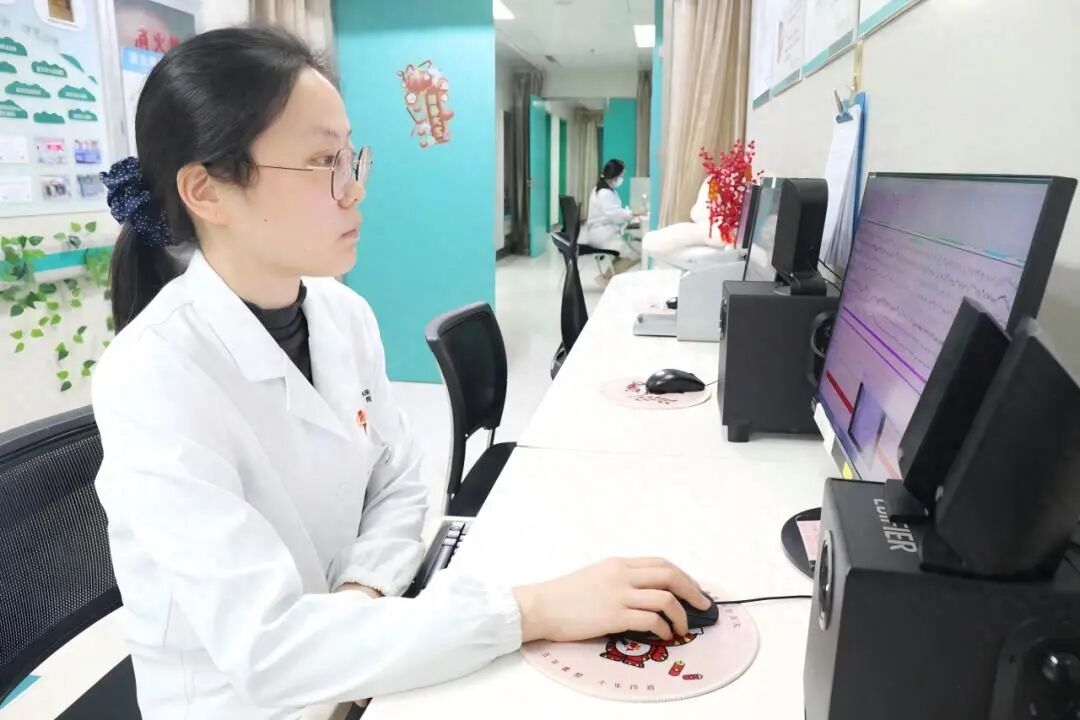 武汉市第一医院睡眠及神经心理团队龚雪医生,正为患者进行睡眠多导监测