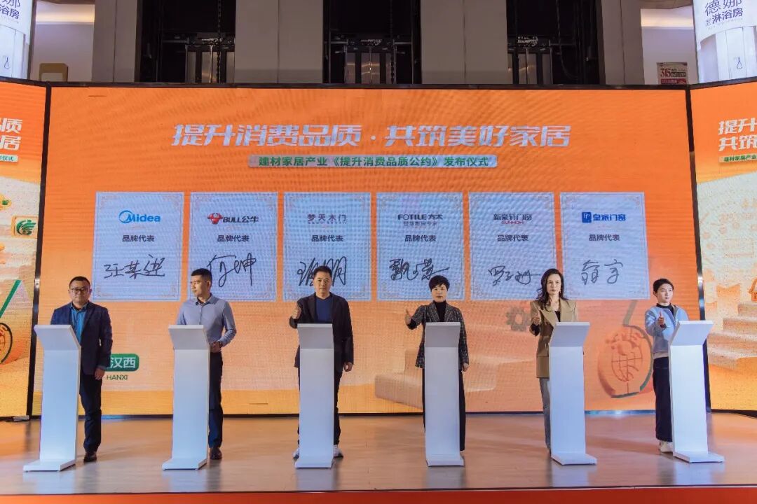 活动现场,武汉市装饰建材家居发展商会会长刘恒斌郑重宣读《武汉市装饰建材家居行业提升消费品质公约》全文。红星美凯龙汉西商场、九牧卫浴、金意陶瓷砖、顾家家居等商会会员企业代表现场纷纷作出承诺;硚口区红星美凯龙汉西商场、南国大家装、华中建材市场、香江家居(武汉店)等家居卖场负责人现场签署《品质公约》承诺书。