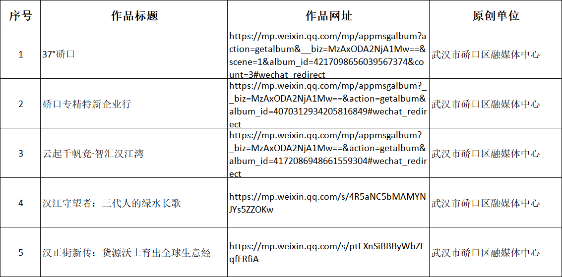 经硚口区融媒体中心专家评审会定评,推荐我中心5件作品参加2025年度武汉优秀新闻作品征集评选(具体篇目附后),现进行公示。