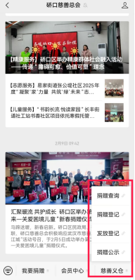 打开路径????关注硚口慈善总会微信公众号,进入“慈善义仓”