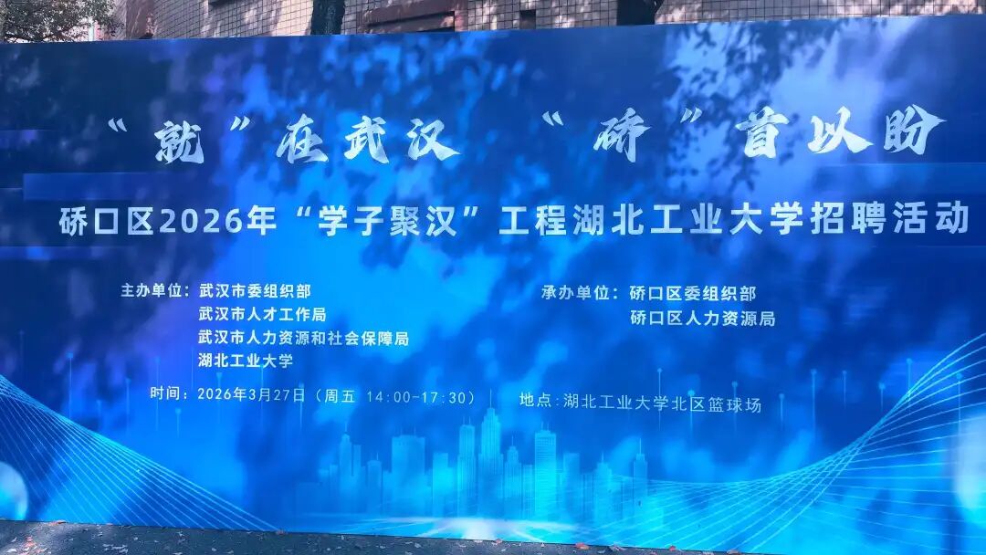 春潮聚英才,职引赴新程。3月27日,“就在武汉・硚首以盼”硚口区2026年“学子聚汉”工程湖北工业大学校园招聘热力启幕,搭建高校毕业生与硚口优质企业双向奔赴桥梁,推动“学子聚汉”工程落地,助力青春人才扎根硚口、逐梦成长。
