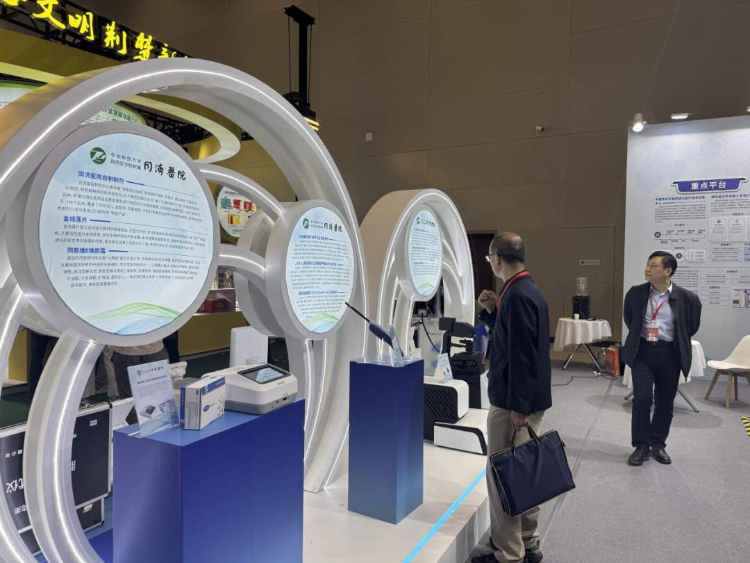 步入硚口展区,同济医院展台前人流络绎不绝。本次参展同济带来多项前沿转化成果:既有心脏不停跳心肌切除器、暴发性心肌炎快速检测试剂盒等填补国内技术空白的创新项目,也有金线莲片、同颜维E焕颜霜等改良型创新制剂,兼顾临床技术突破的高度与民生服务的温度。