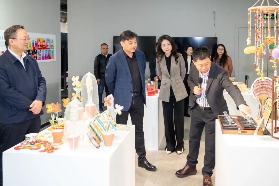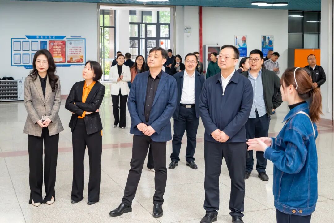 签约仪式前,与会领导、嘉宾参观了学校文创学院毕业生作品展、财经学院新媒体直播实训室、机电工程学院智能制造产教融合实践中心等。