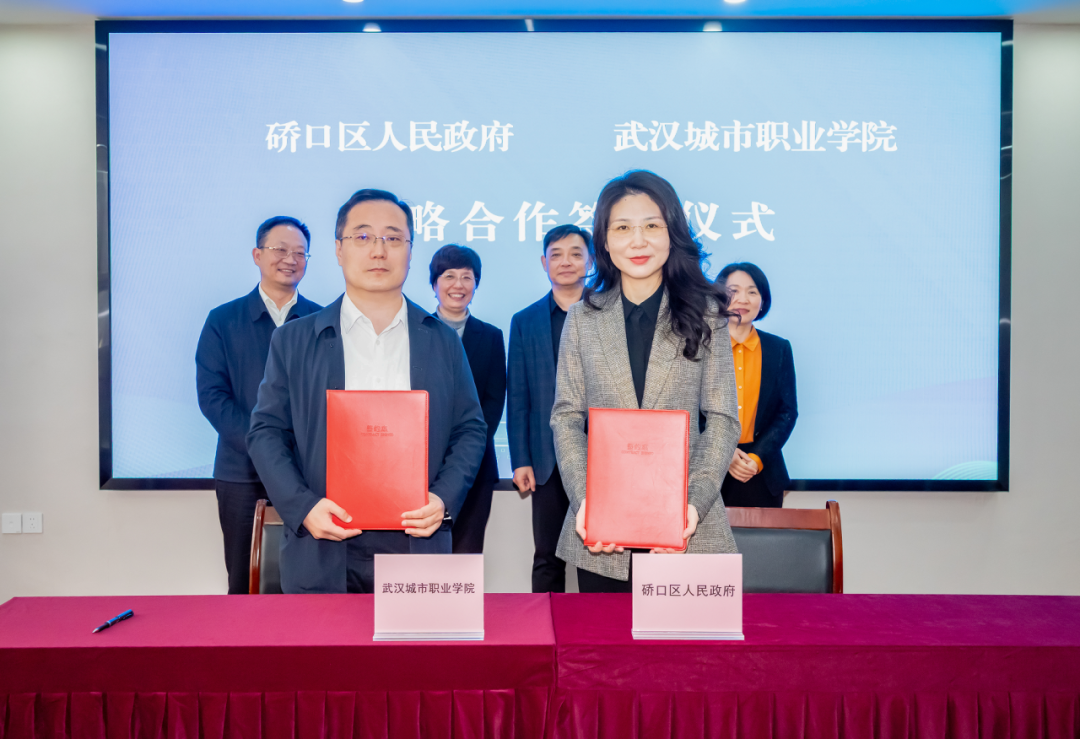 硚口区区直相关单位负责人、企业代表,学校相关职能部门、二级学院负责人参加签约仪式。